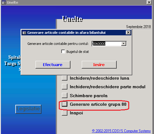Alegem contul, selectăm/deselectăm sectorul (Bugetul de stat) și apăsăm butonul "Efectuare".