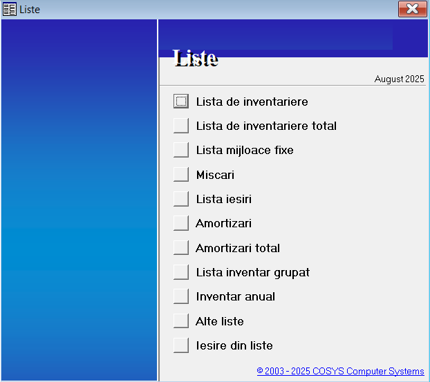 Se listează mijloacele fixe ieşite din patrimoniu pentru luna selectată.