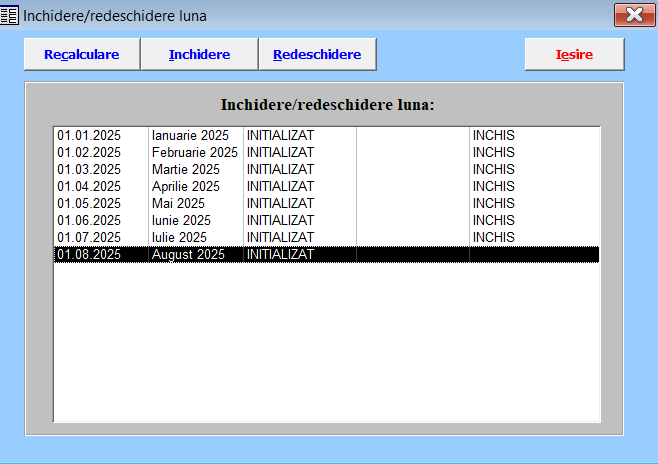 - Schimbare lună – cu ajutorul căruia avem posibilitatea de a trece la o lună anterioară pentru vizualizarea datelor existente.